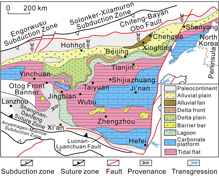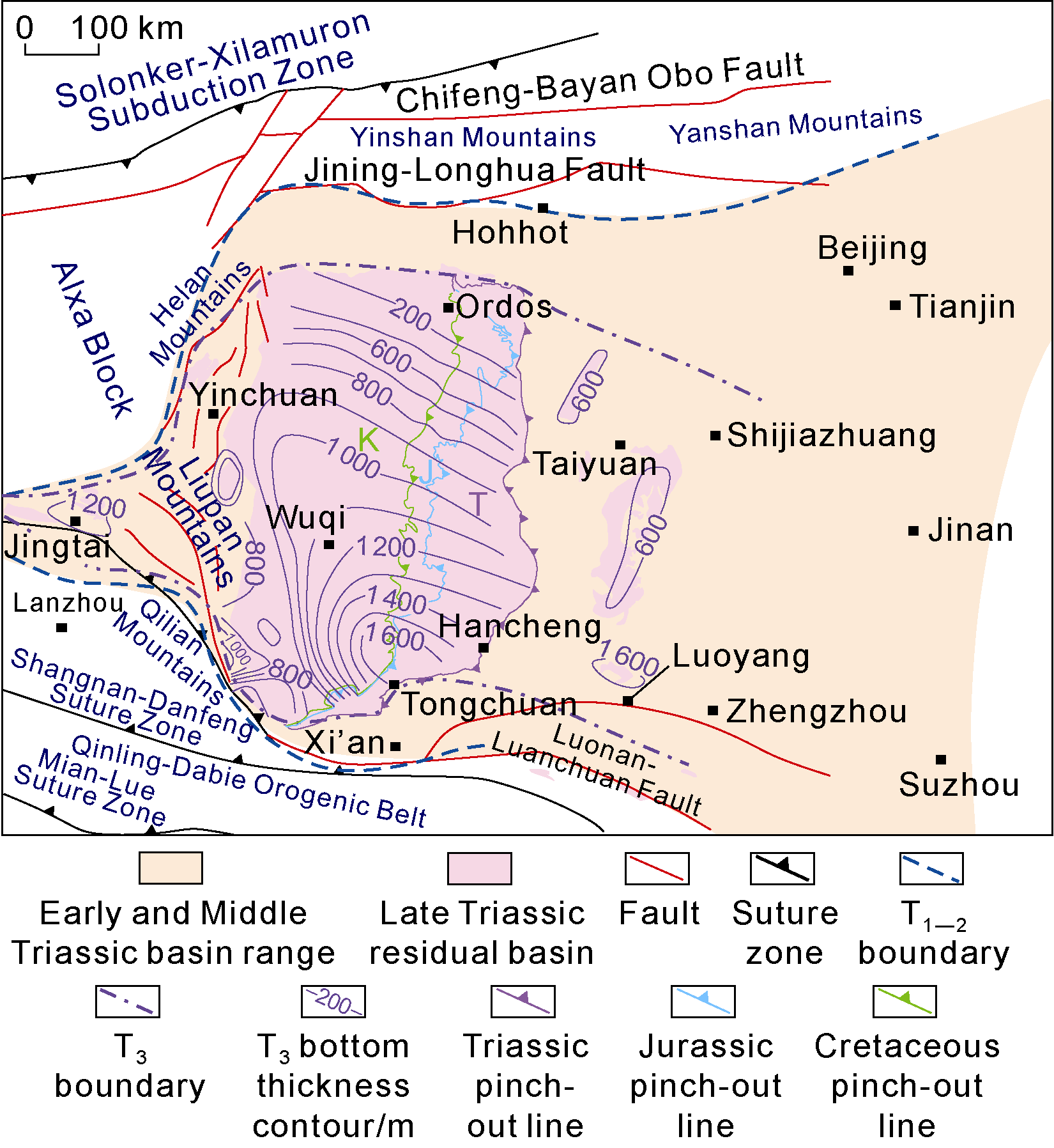 Fig. 5.Distribution of the Ordos prototype basin and adjacent region during the depositional period of the Yanchang Formation in the Middle-Late Triassic.