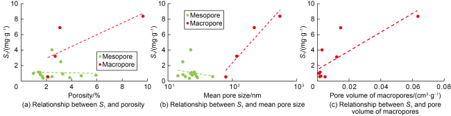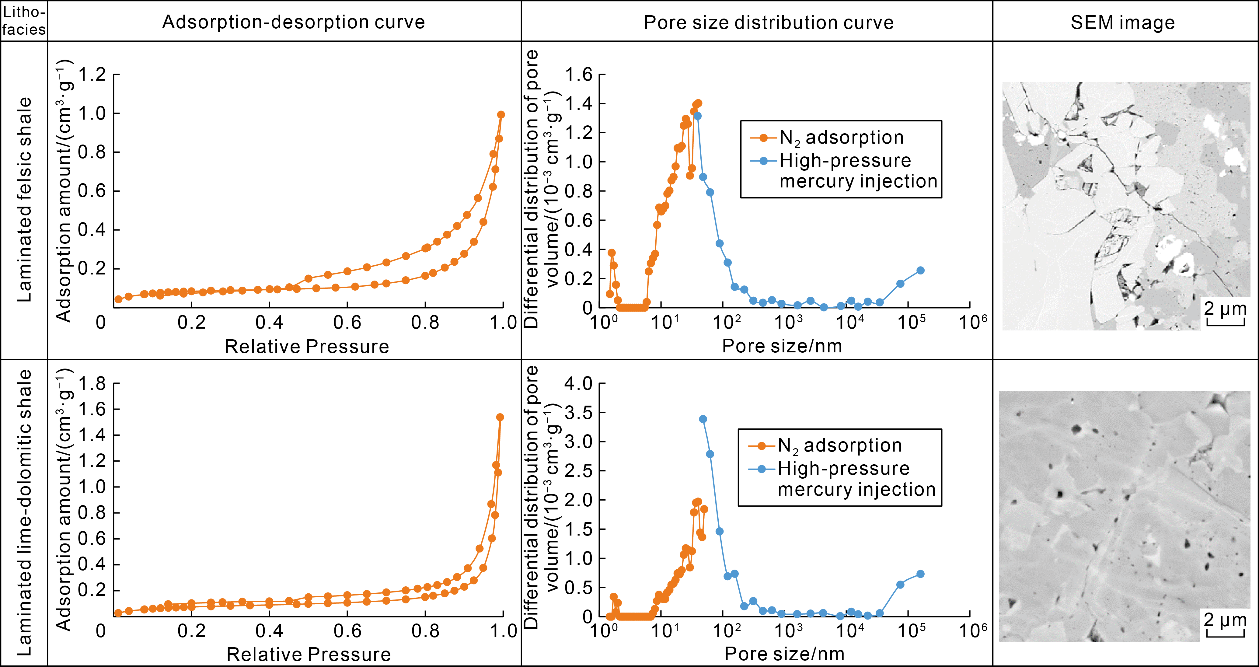 | Lithofacies | TOC/% | S1/(mg·g-1) | ΔQ/(mg·g-1) | Permeability/ 10-3 μm2 | Porosity/ % | Pore size/ μm | |