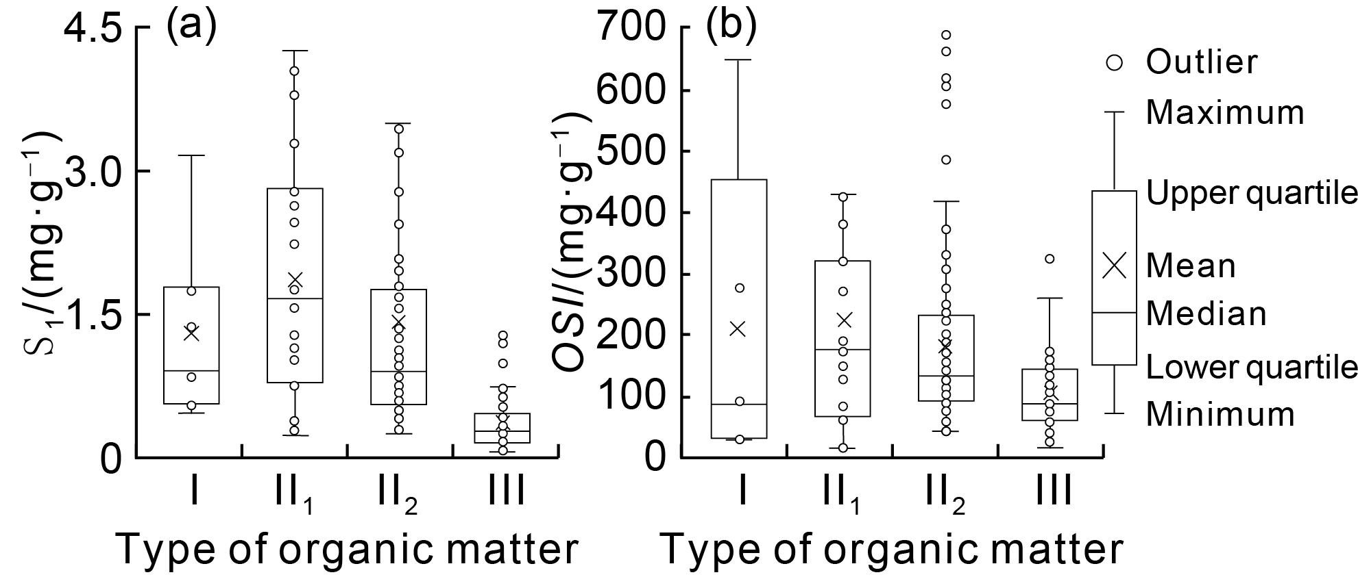 Fig. 9. Oil-bearing properties of shale with different types of organic matter in the Fengcheng Formation, Mahu Sag. |