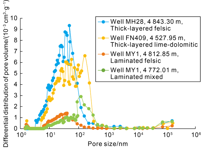 Fig. 5. Pore size distribution of shale in the Fengcheng Formation, Mahu Sag. |