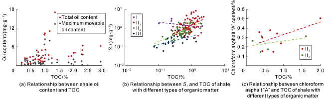Fig. 7. Relationship between oil content and organic matter abundance in Fengcheng Formation shale. |