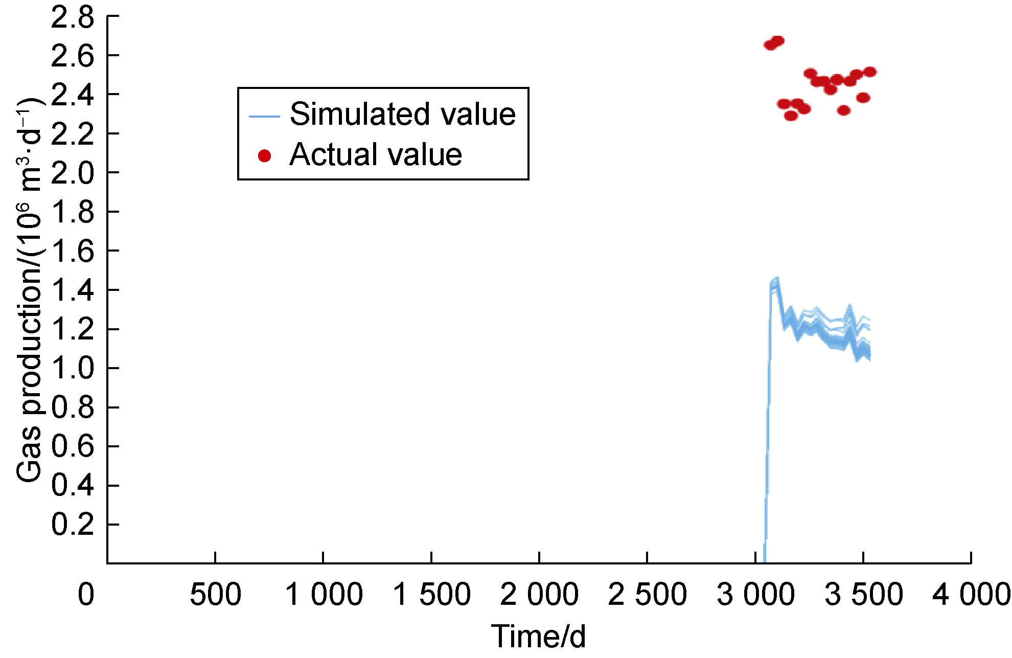 Fig. 4. Gas production of P17 after the initial data assimilation process. |