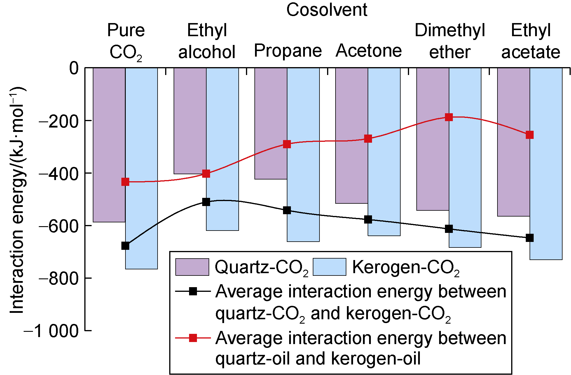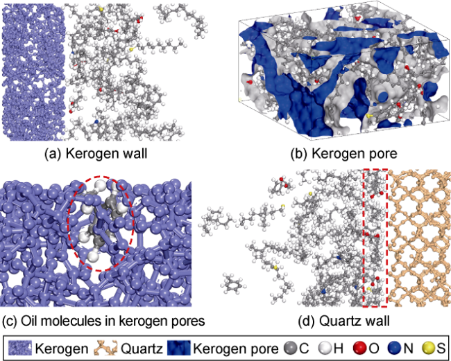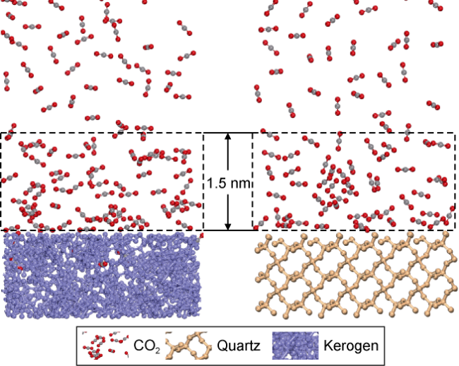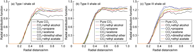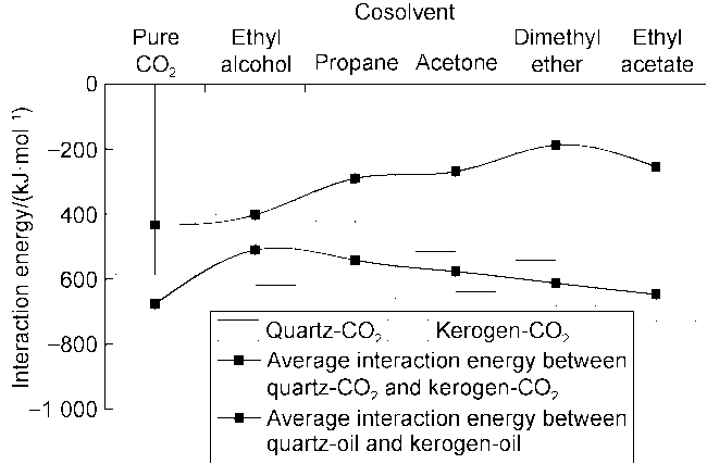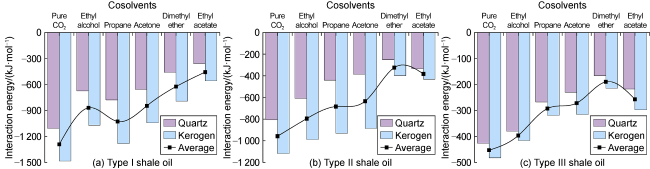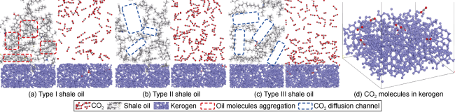 2 is excellent. (3) The benzene ring is strongly attracted by kerogen, and there is also an aromatic ring stacking effect between hydrocarbon molecules with benzene ring structure, which increases the difficulty of stripping shale oil containing benzene rings. (4) Hydrogen bonds are formed between kerogen and cyclohexanepropionic acid or various non-hydrocarbon compounds, which makes it difficult for non-hydrocarbon compounds to be stripped. (5) The effect of CO