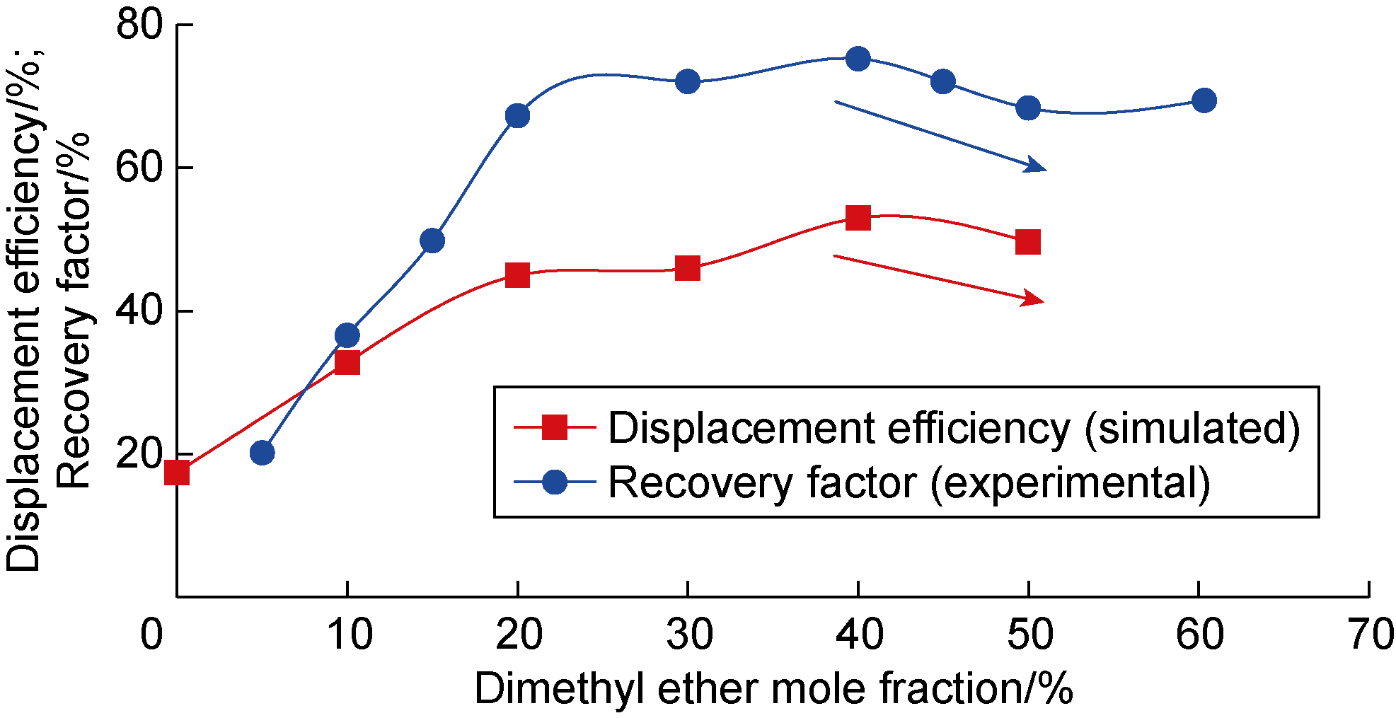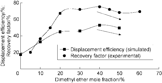 2+dimethyl ether on types II and III shale oil is the best, with displacement efficiencies of 41.65% and 43.01%, respectively. (7) The stripping effect of CO