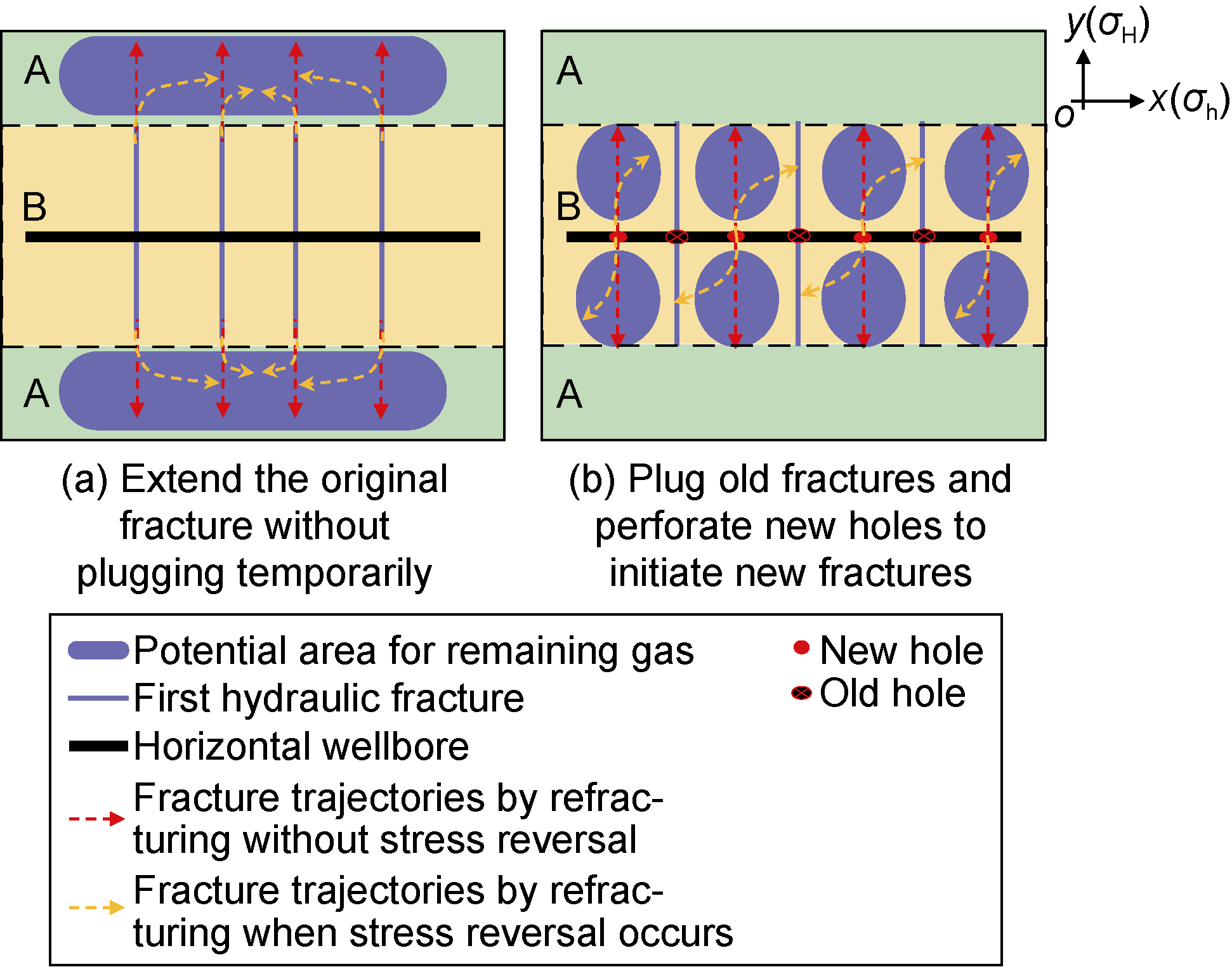 [12] found that stress reversal has a significant impact on the selection of refracturing methods by studying the pressure and stress distribution after the pressure depletion of fractured reservoirs. Ibáñez et al.