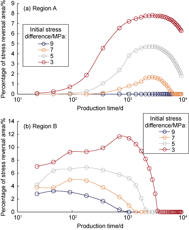 [6] believed that there is a relationship between the change of stress field and reservoir development, and the smaller the initial horizontal principal stress difference of the reservoir, the more conducive to the in-situ stress reversal. Roussel et al.