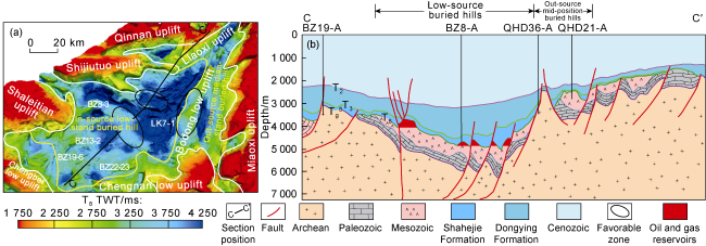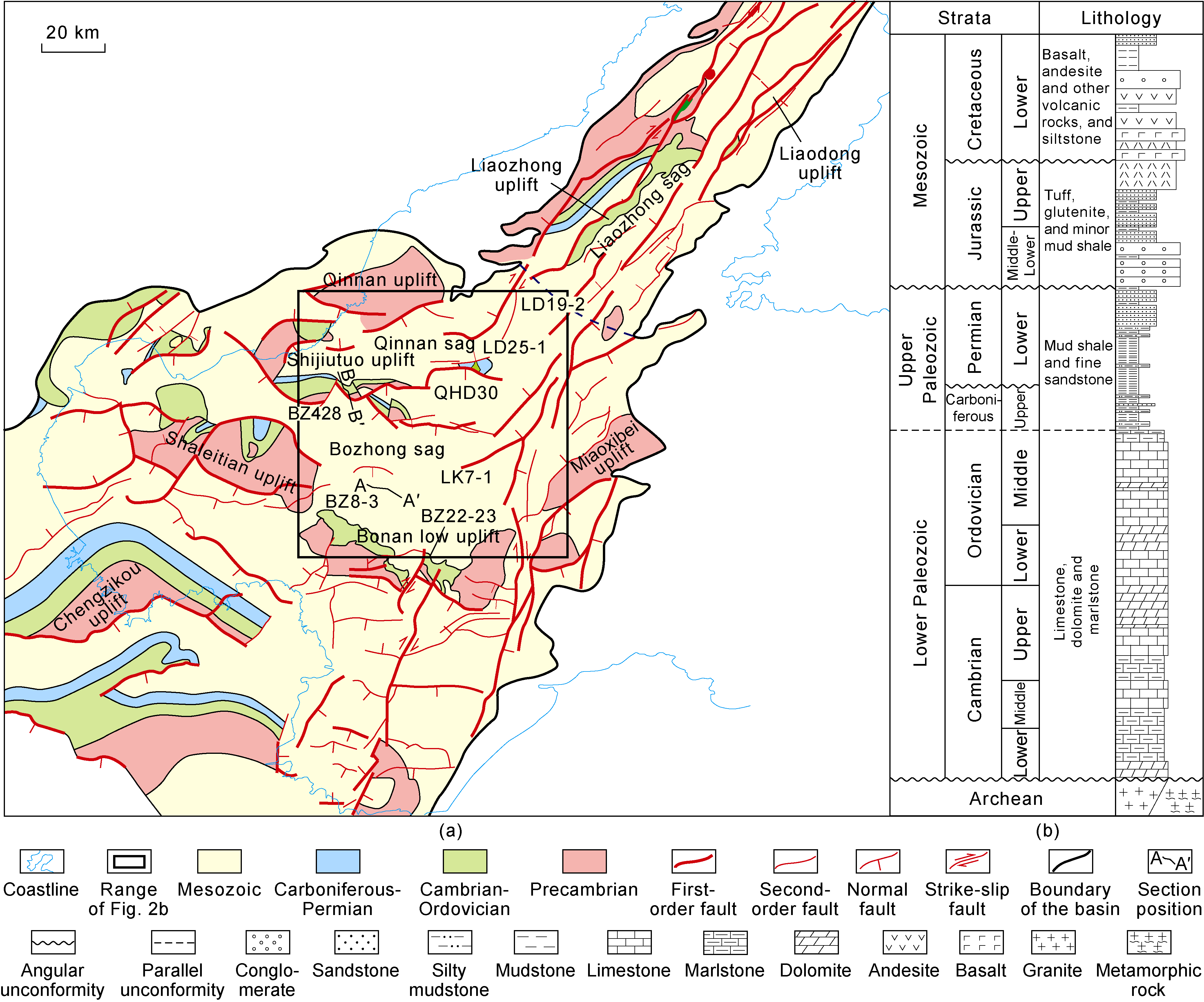 [16⇓-18]. The largest hydrocarbon-rich sag in the offshore Bohai Bay Basin, the Bozhong Sag, has good hydrocarbon source rocks. In recent years, with continuous exploration and related research, a number of large Mesozoic trap groups have been confirmed around the Bozhong Sag