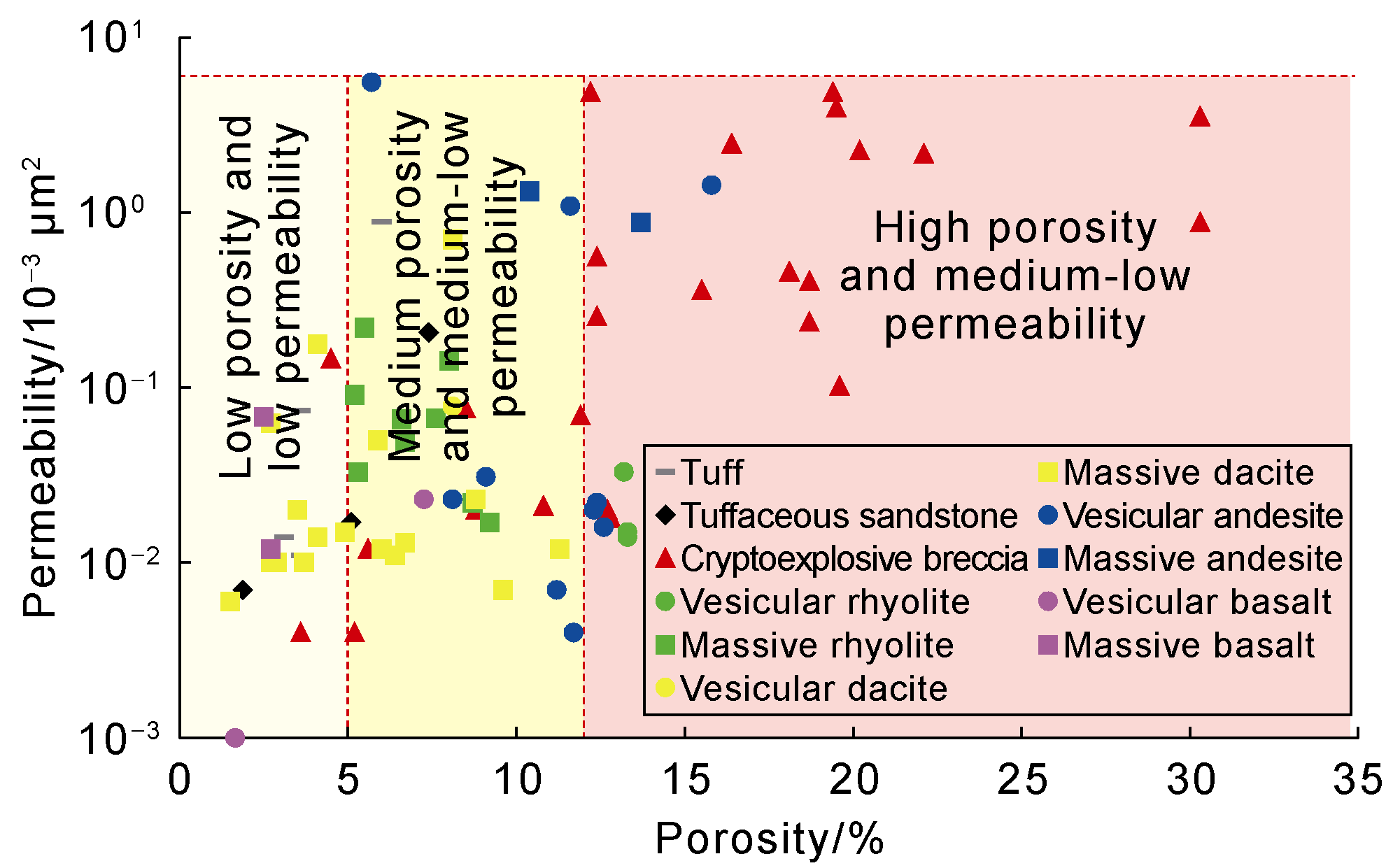 [14]. A series of exploration has also been carried out for Mesozoic volcanic rocks, more than 30 exploration wells were drilled, and oil and gas discoveries were made occasionally, but no commercial breakthrough has been made. It has been proved that volcanic rocks are important oil and gas reservoirs in deep sedimentary basins in China