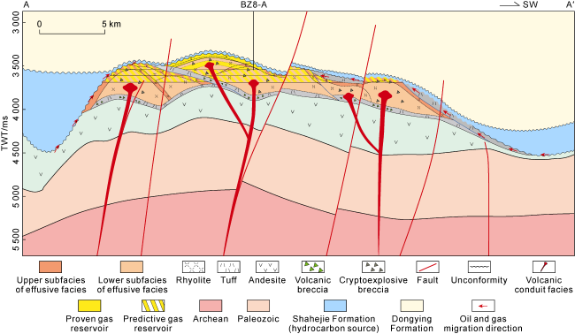 [1]. A series of progress has also been made in the temporal and spatial distribution of volcanic rocks, volcanic edifices and facies, controlling factors of reservoirs and reservoir forming conditions