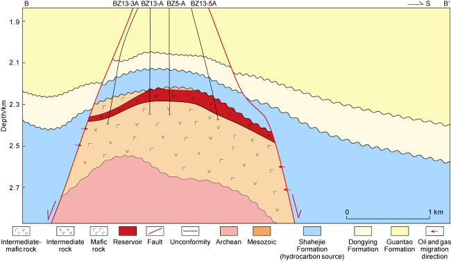 [10⇓⇓-13], and condensate gas fields at a level of 100 billion cubic meters and oil fields at a level of 100 million tons were discovered, such as BZ19-6 and BZ13-2 in the Archean buried hills in 2019 and 2021, respectively