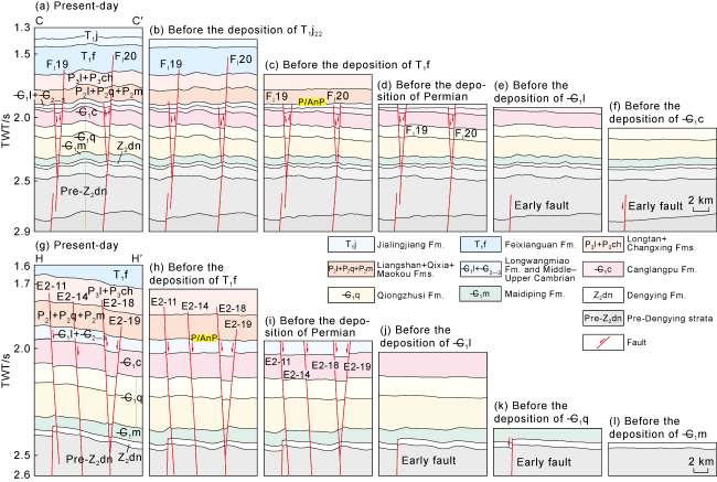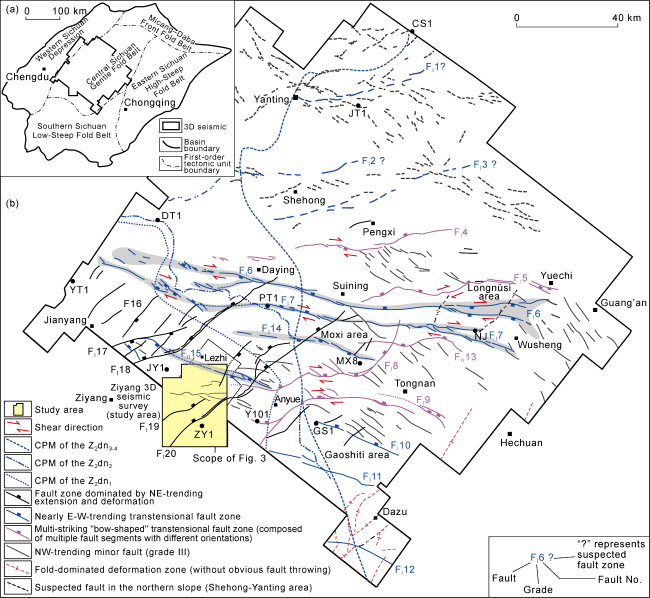 [24⇓-26]. The Anyue Gasfield, situated in the central Sichuan Basin, east to the Ziyang 3D seismic survey, presents a unique tectonic-sedimentary differentiation pattern and exceptional source-reservoir configuration