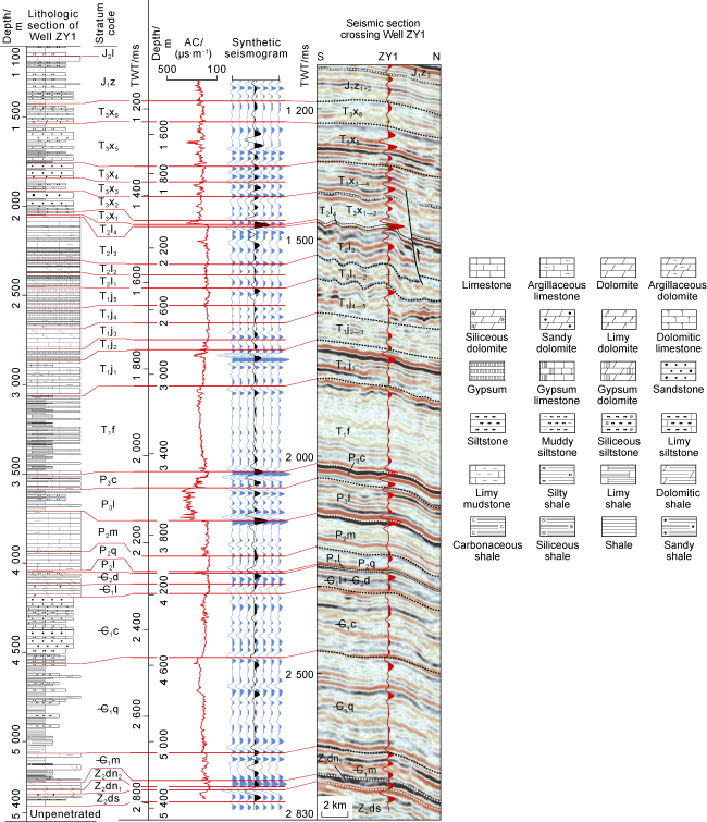 2), totaling a thickness of 63.5 m. Fracturing tests indicate a dense lithology that has not been fractured. Meanwhile, the Longwangmiao, Qixia and Maokou Formations contain water or exhibit poor gas-bearing properties.