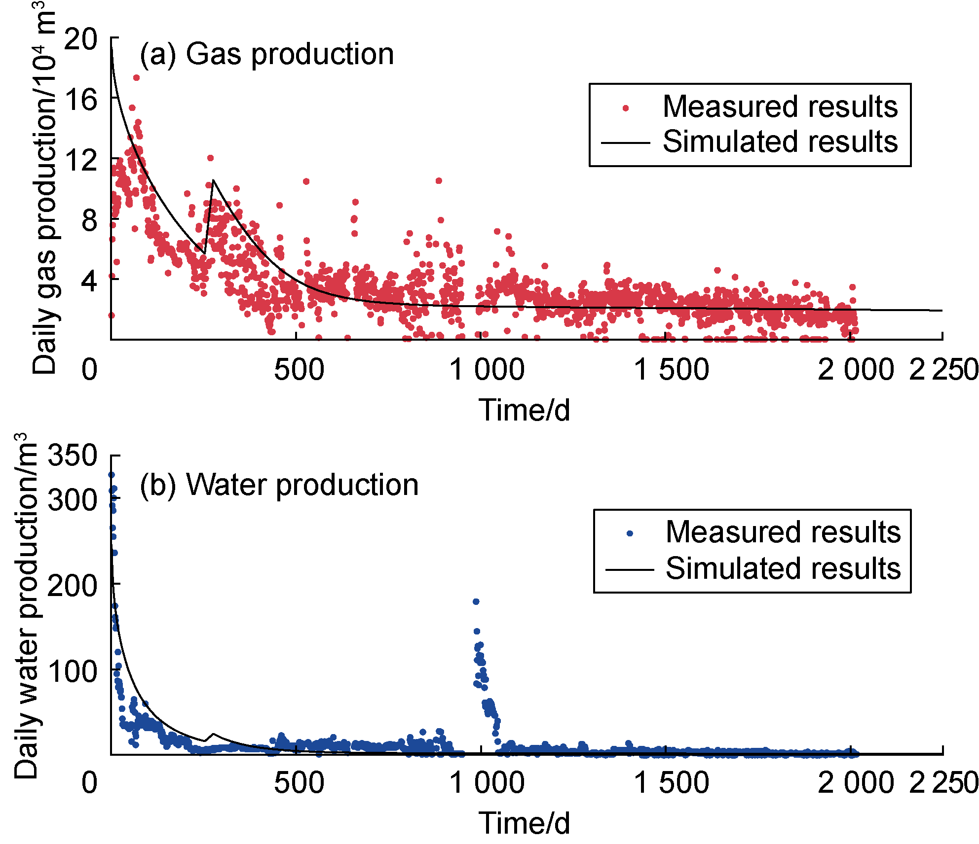 Fig. 15. Fitting results of simulated and measured production performances of Well H. |