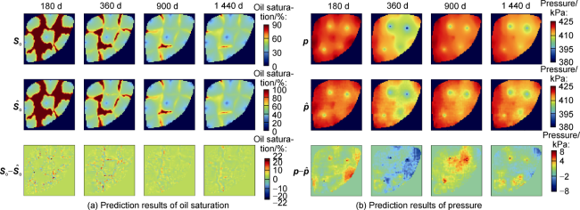 [40] used the ConvLSTM model to predict oil saturation and bottom-hole pressure distribution at different production moments using actual oilfield data. Zhang et al.