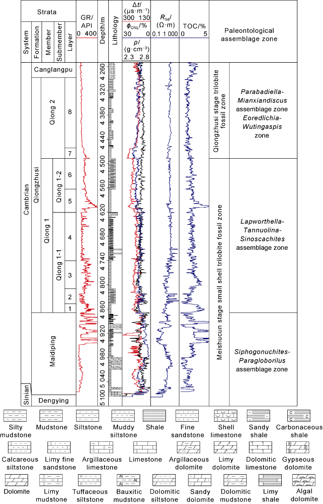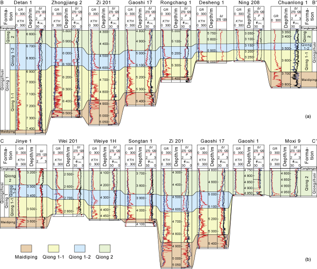 Table 1. Log-interpreted reservoir parameters of layer 5 of the Qiongzhusi Formation in the Sichuan Basin |