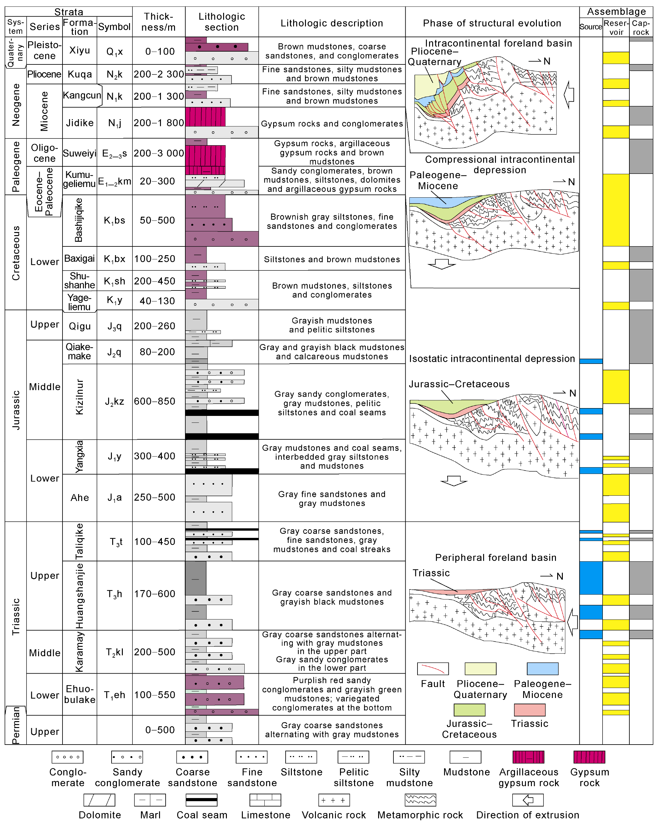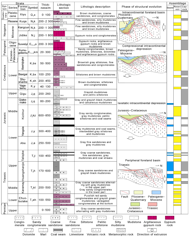 [13-14]. On the other hand, seismic data quality is poor due to large buried depth of the Triassic in the depression, thus it is hard to establish accurate stratigraphic subdivision, sedimentary evolution, and the distribution of source rocks in the Triassic of Kuqa Depression.