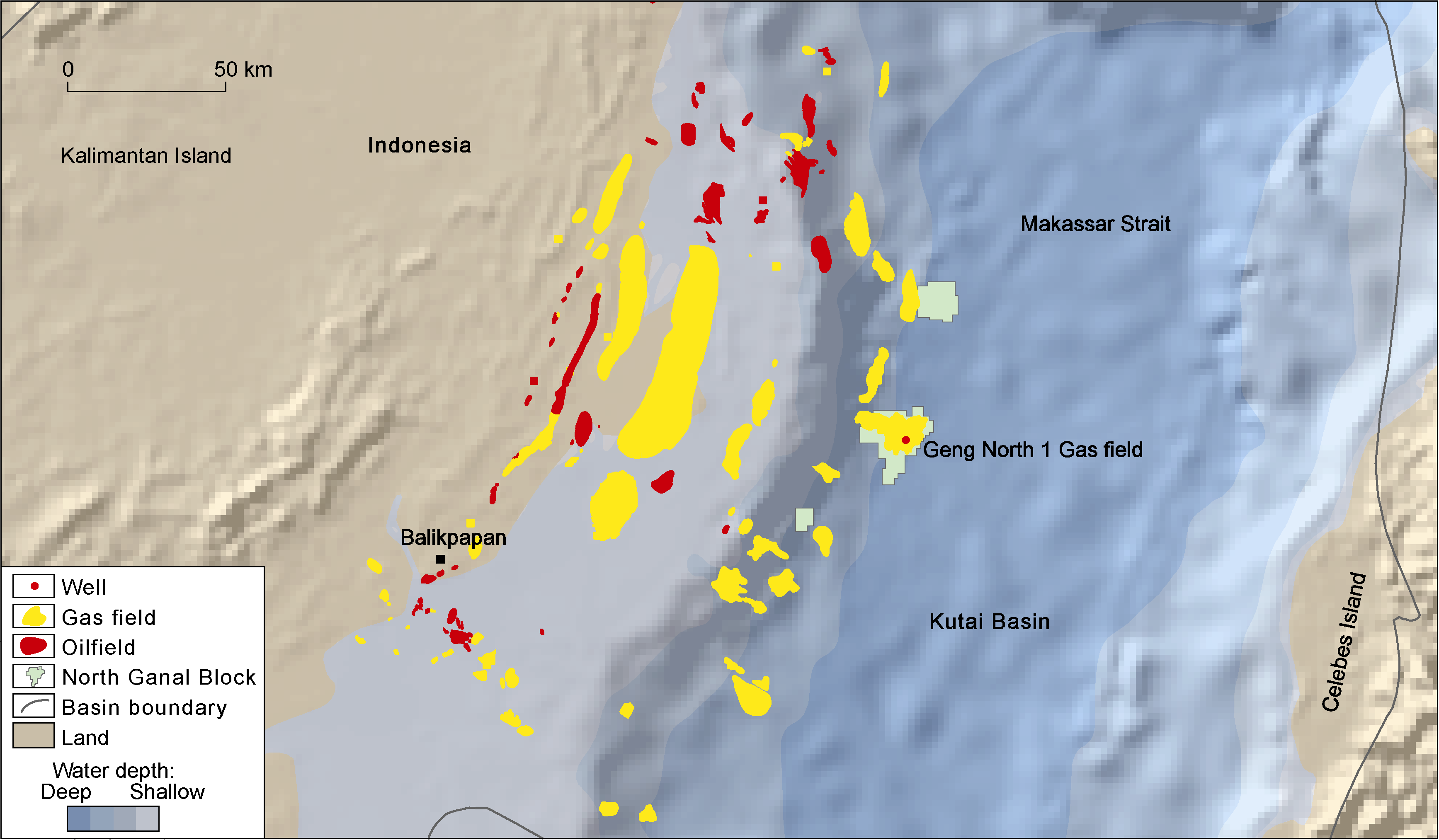 Fig. 7. Current status of oil and gas exploration in the Kutai Basin of Indonesia in the Asia Pacific region and the location of Geng North 1 Gas Field in Indonesia, Asian-Pacific. |