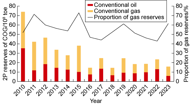Note: The recoverable reserves (toe) of large, medium, and small oil and gas fields are more than 0.69×108 t, (0.14-0.69)×108 t, and less than 0.14×108 t, respectively. |