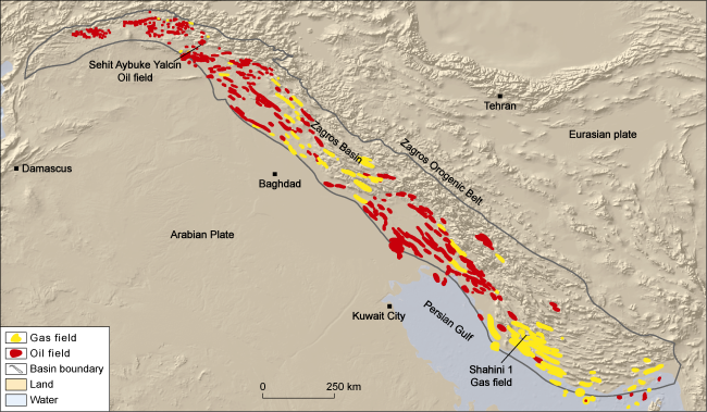 Fig. 6. Distribution of oil and gas fields in the Zagros Basin of Iran in the Middle East. |