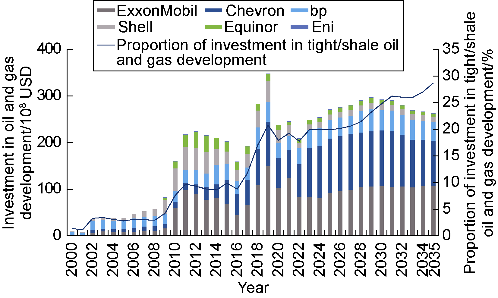 Fig. 15. Investment in the development of tight/shale oil and gas by the seven major IOCs over the years [10]. |