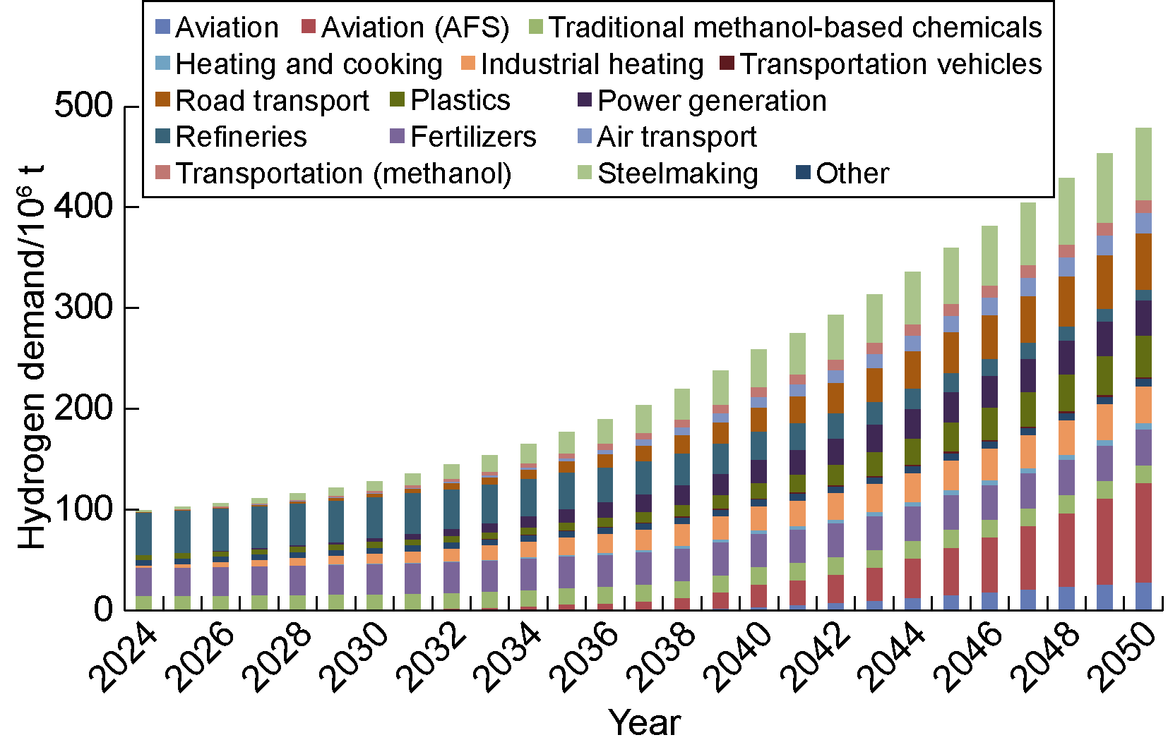 Fig. 20. Forecasts of hydrogen demand by different fields from 2024 to 2050 [31]. |