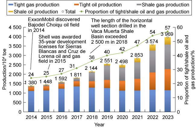 Fig. 17. History of tight/shale oil and gas production in Argentina [10]. |