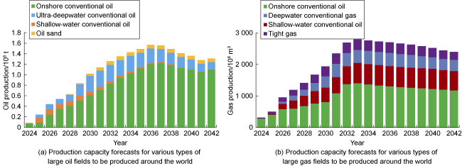 Fig. 2. Production capacity forecasts for various types of large oil/ gas fields to be produced around the world. |
