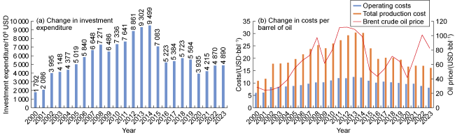2.3. Global investment in oil and gas development increased steadily, and both the total production cost and operating cost decreased