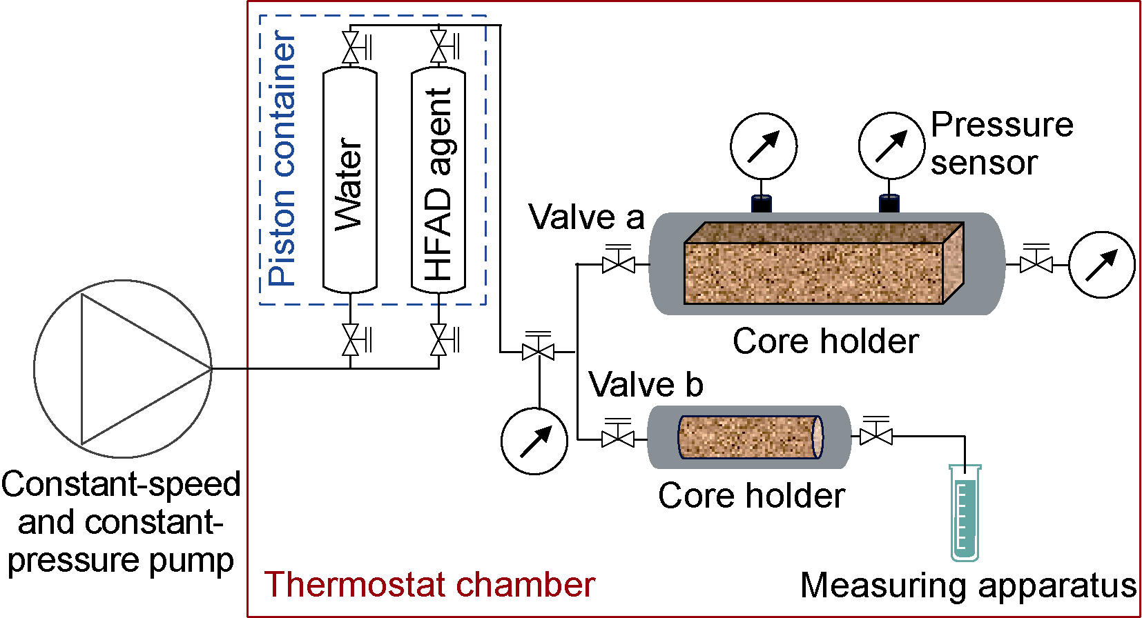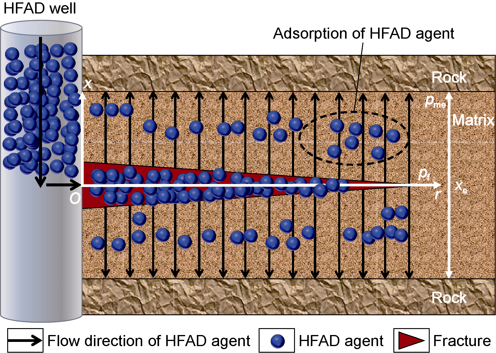 [13⇓-15]. Despite these advancements, research on the theories of seepage of HFAD technology remains limited. The replenishment of formation energy by the high-pressure of HFAD technology effectively reduces agent adsorption loss, impacting the agent concentration field distribution and altering the fluid viscosity field. As a result, the conventional seepage model is no longer applicable. Consequently, fluid flow behavior after HFAD technology remains unclear, and theoretical guidance for engineering applications is insufficient, limiting the broader adoption of HFAD technology.