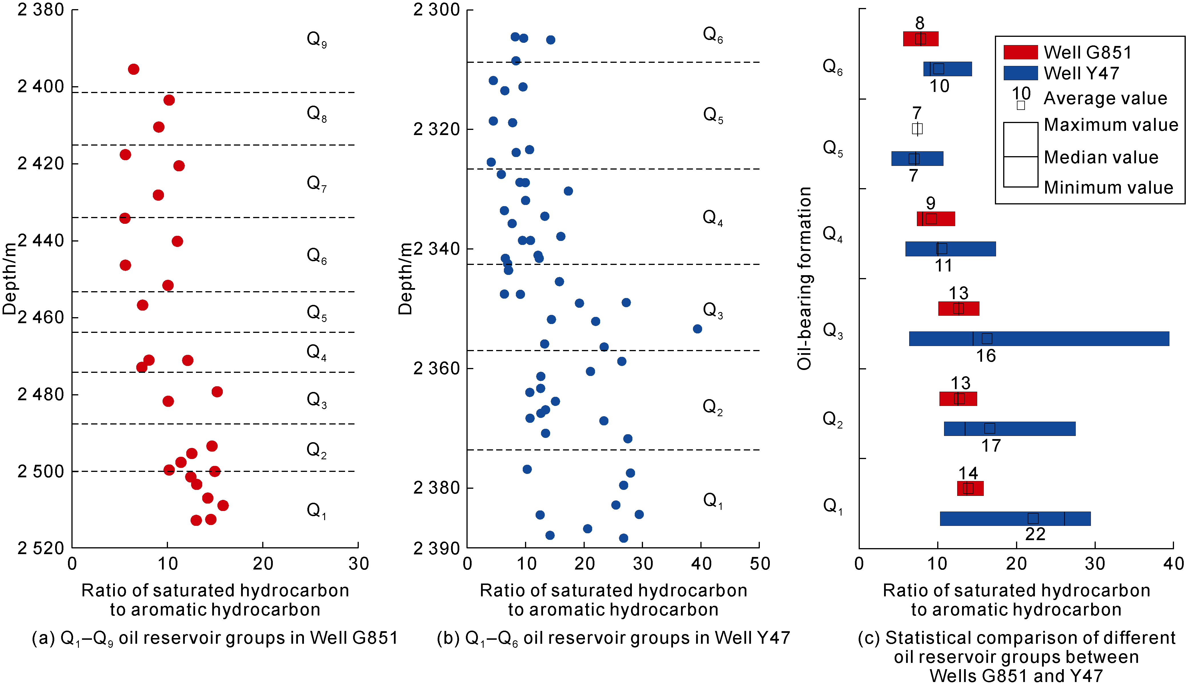 th Member of Shahejie Formation in Jiyang Depression of the Bohai Bay Basin, the contents of saturated hydrocarbons, waxes, aromatic hydrocarbons, non-hydrocarbons and asphaltenes are 55%, 20%-30%, 15%, 15% and 5%, respectively. It can be seen that the content of high carbon number waxes in alkanes is high, the proportion of non-hydrocarbons + asphaltenes is relatively large, and the density of crude oil is heavy, mainly in the range of 0.85-0.94 g/cm