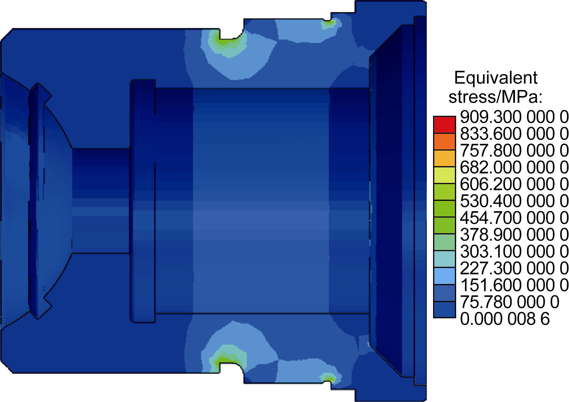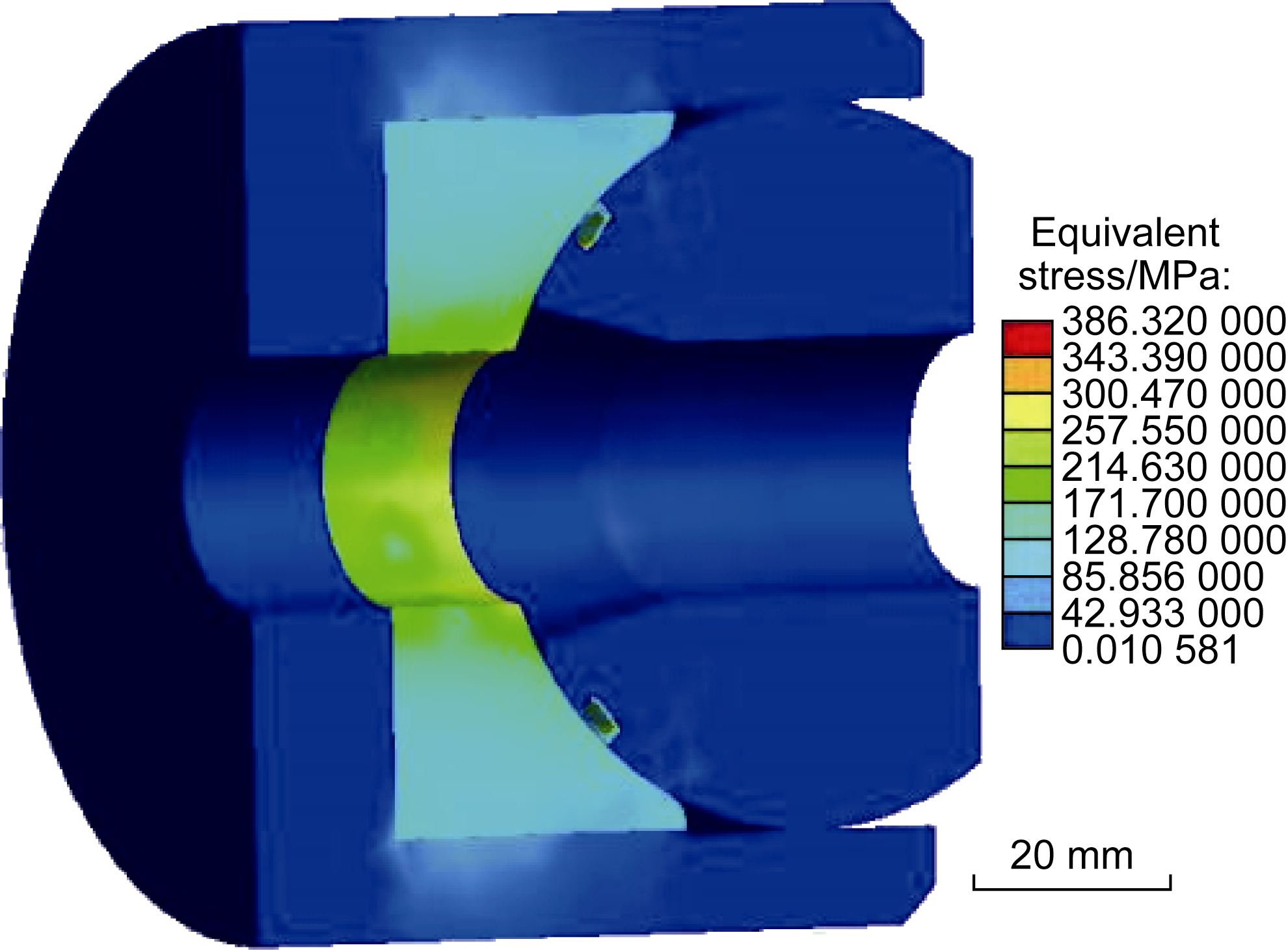 Fig. 3. Equivalent stress distribution of end shield at a torque of 12 kN·m. |