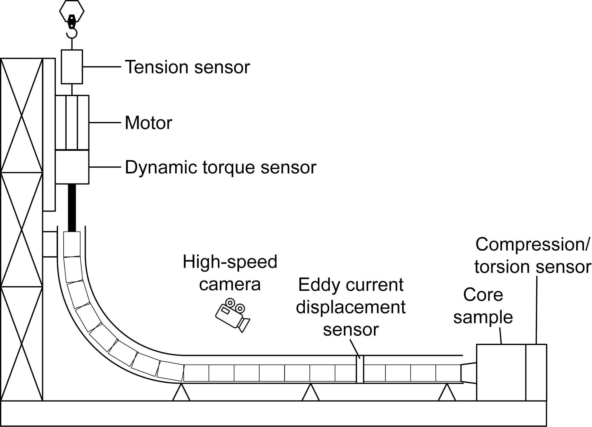 Fig. 6. Test bench for sidetracking scaled model of flexible drill pipe. |