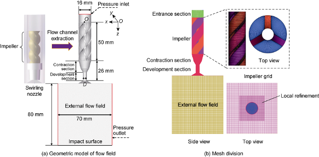 [12] compared and analyzed the influence of different structural parameters on the swirling nozzle performance through numerical simulation on swirling-abrasive jet flow field by FLUENT software, based on fluid swirling flow and multi-phase flow mechanics theory. Wu et al.