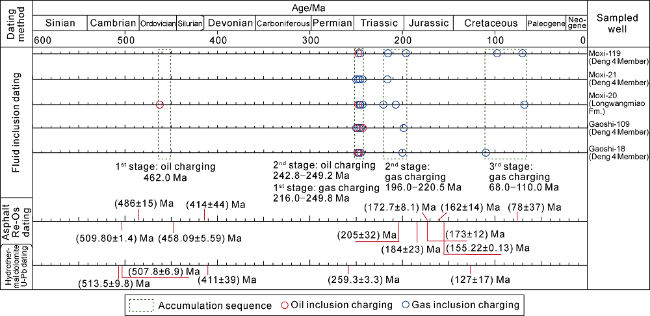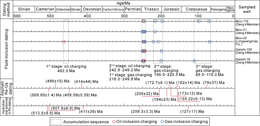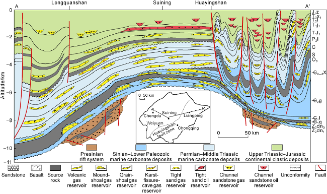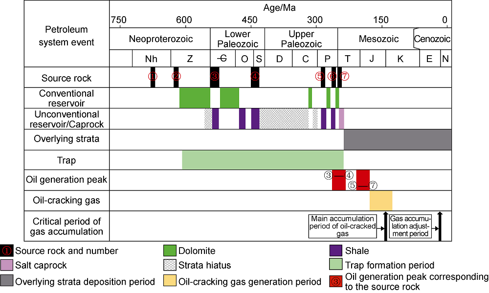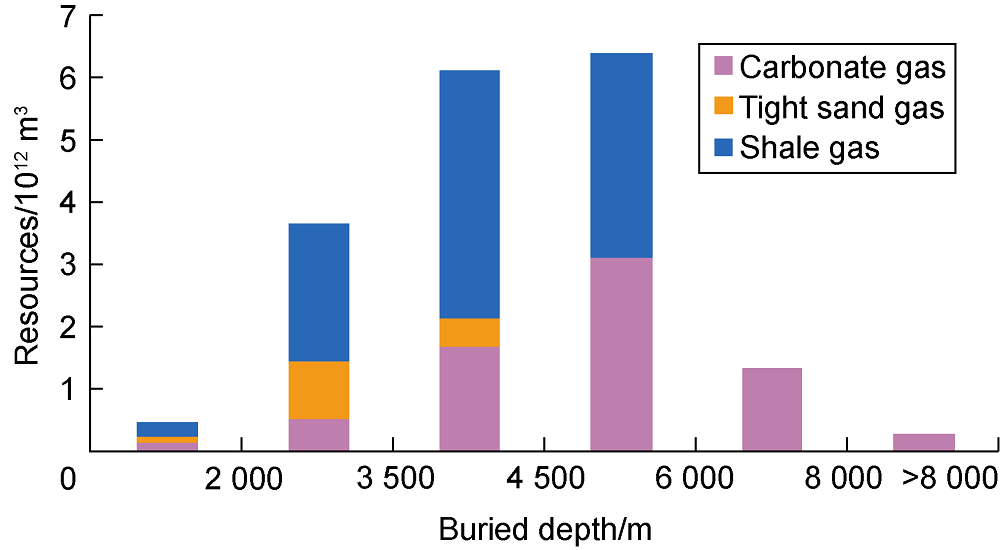 3 in 2009. (4) In the fourth stage (2012 to present): gas province exploration, the conventional gas in the Sinian-Cambrian carbonate reservoirs, shale gas in southern Sichuan Basin and tight sand gas in Jurassic were mainly explored, the cumulative proved gas reserves were 20 541×10