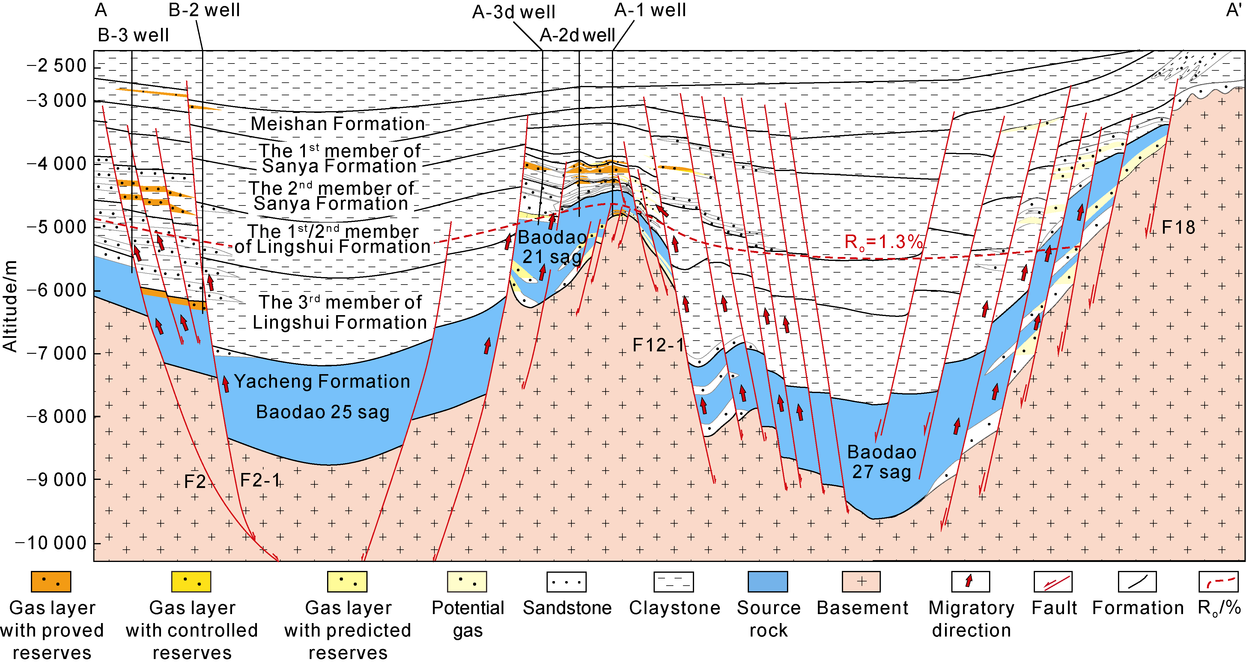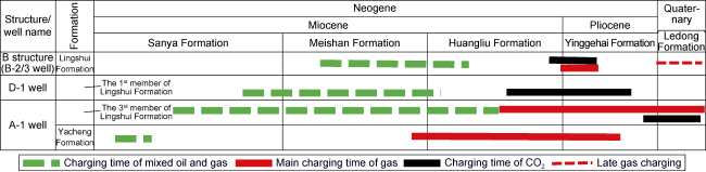 [19⇓⇓⇓⇓-24]. Through years of exploration, several reservoir-forming assemblages have been discovered, including the Mesozoic Subduction Mountains, the delta-submarine fan of the Paleozoic Yacheng Formation-Lingshui Formation (fan), and the submarine fan of the Miocene Sanya Formation-Meishan Formation