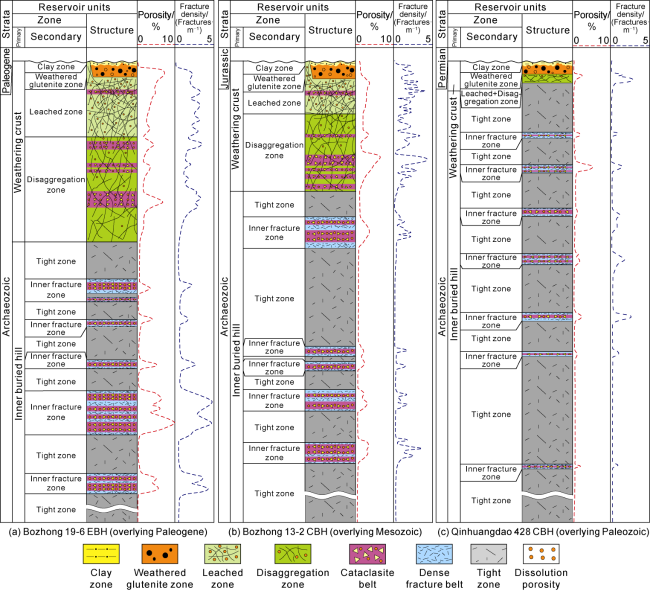 Fig. 3. Vertical reservoir structure model of Archaeozoic metamorphic buried hill in Bozhong Sag, Bohai Bay Basin. |