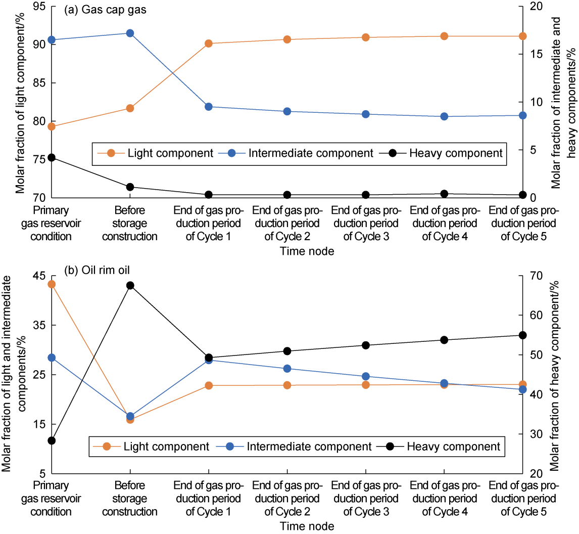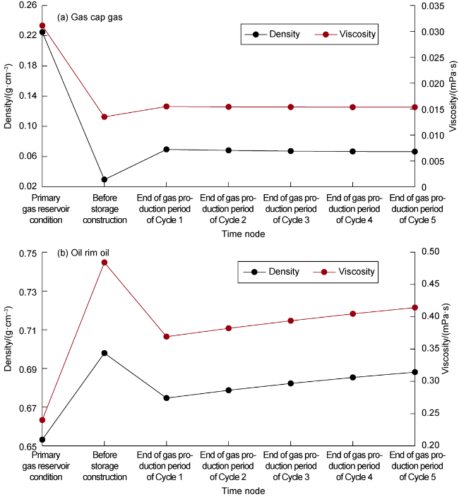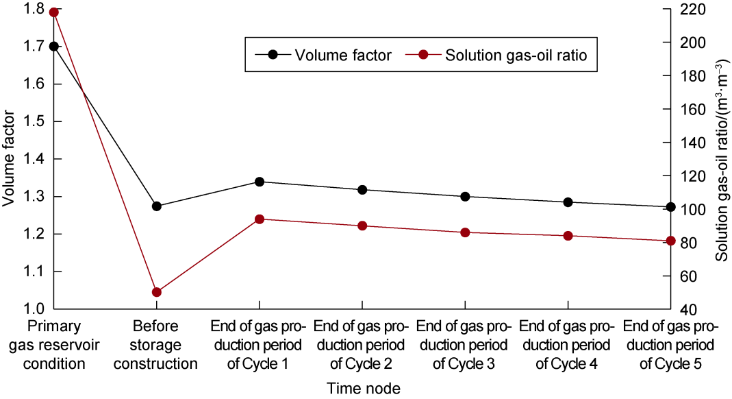 GORm,s—solution gas-oil ratio of oil rim oil in residual oil and gas system after grade m gas production of cycle s, m3/m3;