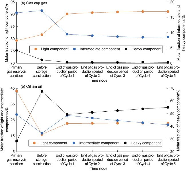 fg,s, fo,s—molar fraction of gas and oil phases in residual oil and gas system at the end of gas injection of cycle s, dimensionless;