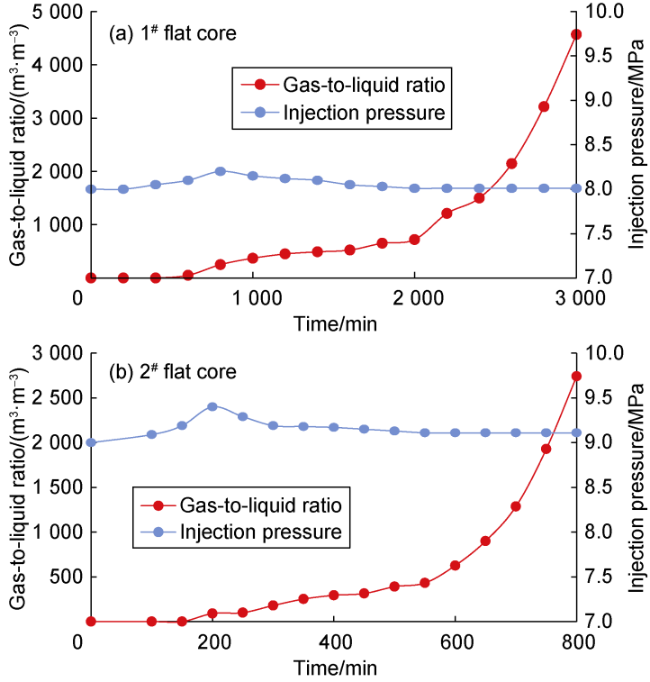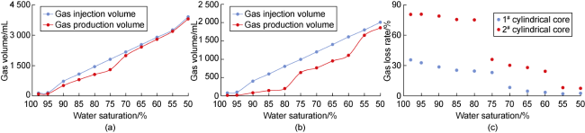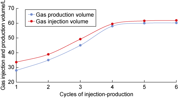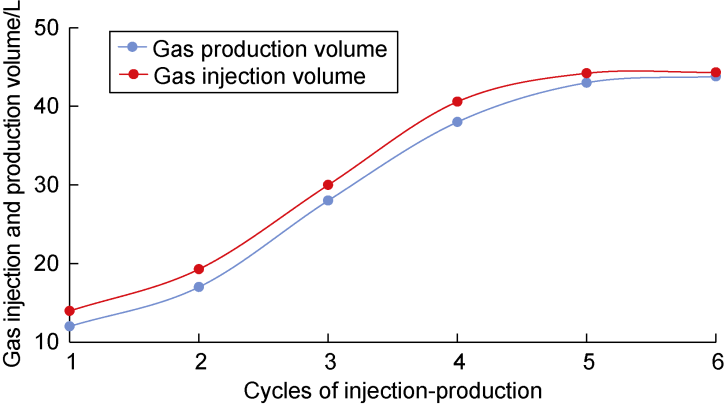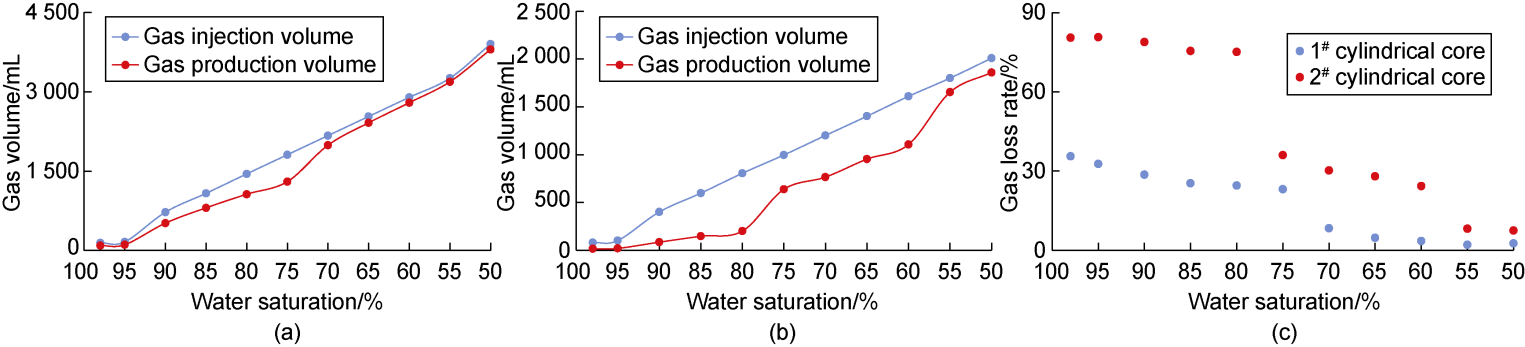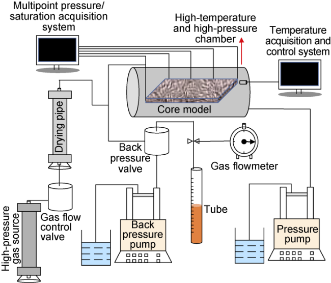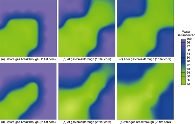 [10] conducted a sensitivity experiment on gas injection and production rates, and identified the relationship between gas injection rate and storage capacity, gas production rate and efficiency for gas-driven water when constructing a reservoir into a UGS. However, due to the small core size used in the experiment, it was difficult to clearly understand the fluid distribution and expansion law during the operation of the UGS.