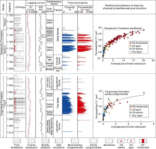 Fig. 6. Physical properties, oil-bearing and pore structure characteristics of the reservoir in Shuangcheng area. |