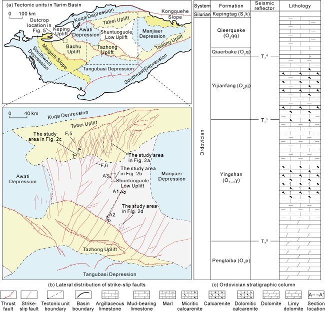 Fig. 2a), whereas single-orientation faults dominate the northern slope of the Tazhong Uplift and the Shuntuoguole Low Uplift