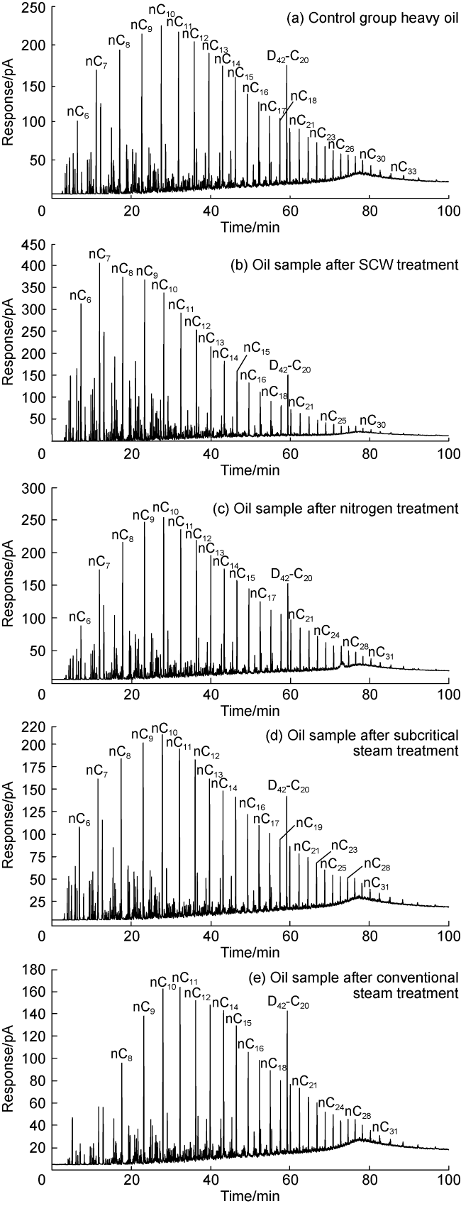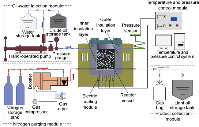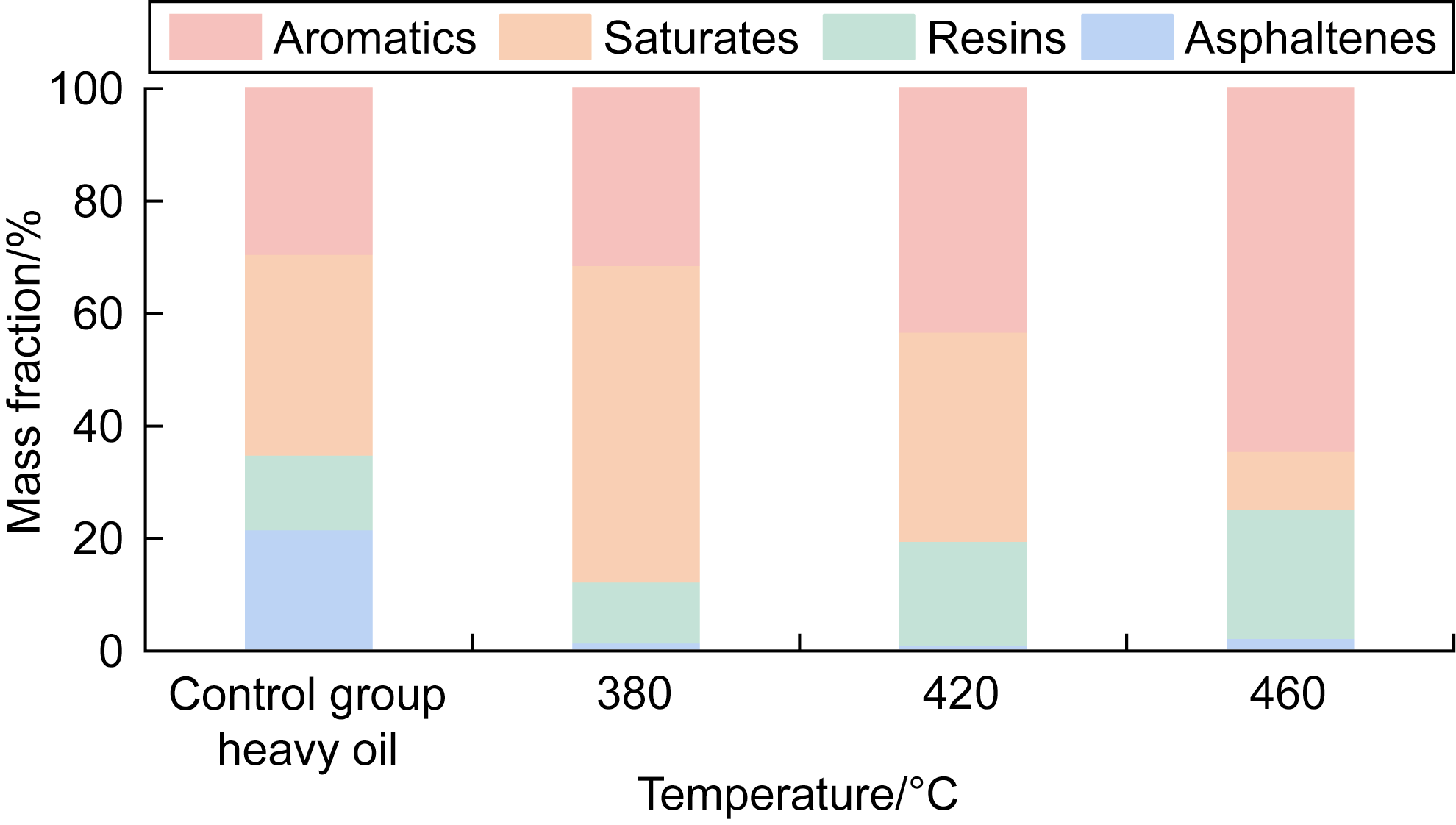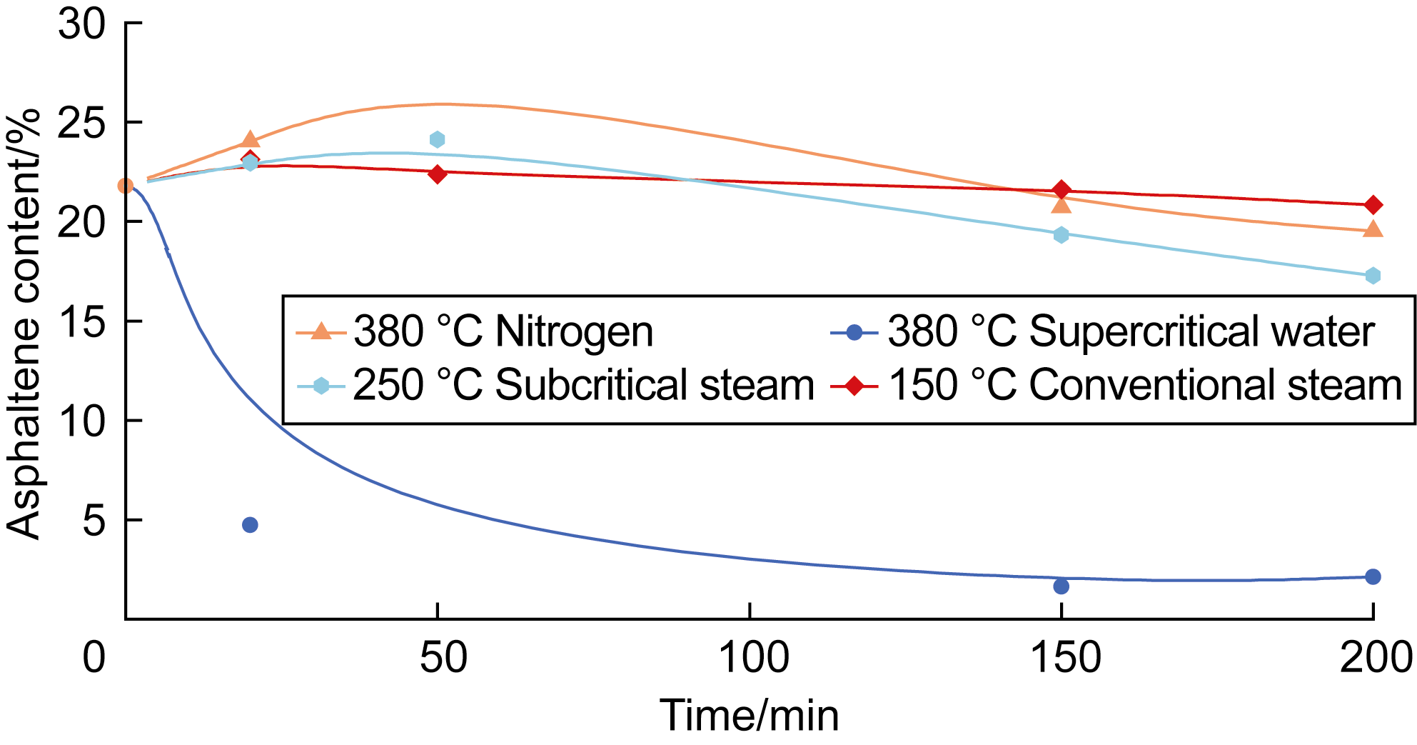 [12]. In summary, previous studies on the upgrading of heavy oil using SCW have primarily focused on reaction kinetics and coking behavior, with limited systematic evaluation of the characteristics of the produced fluids and viscosity reduction. The key factors influencing the effectiveness of SCW upgrading and viscosity reduction, as well as the extent of their impact, remain unclear. Further research is needed to elucidate the microscopic mechanisms and dominant controlling factors.