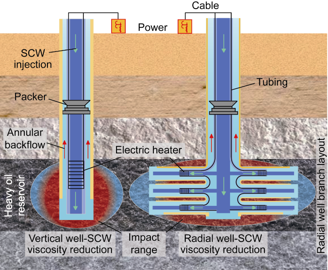 [9]. The use of SCW for viscosity reduction offers the advantage of physically separating crude oil products without relying on chemical additives or catalysts. After sedimentation and dewatering, the treated crude oil can be transported without requiring heating stations along the pipeline, and reducing transportation costs. Zhao et al. discovered that supercritical multi-component thermal fluids (organic wastewater mixed with gasified supercritical water) effectively promote the in-situ transformation of underground heavy oil and low-maturity shale oil, significantly enhancing the hydrocarbon conversion efficiency of organic matter