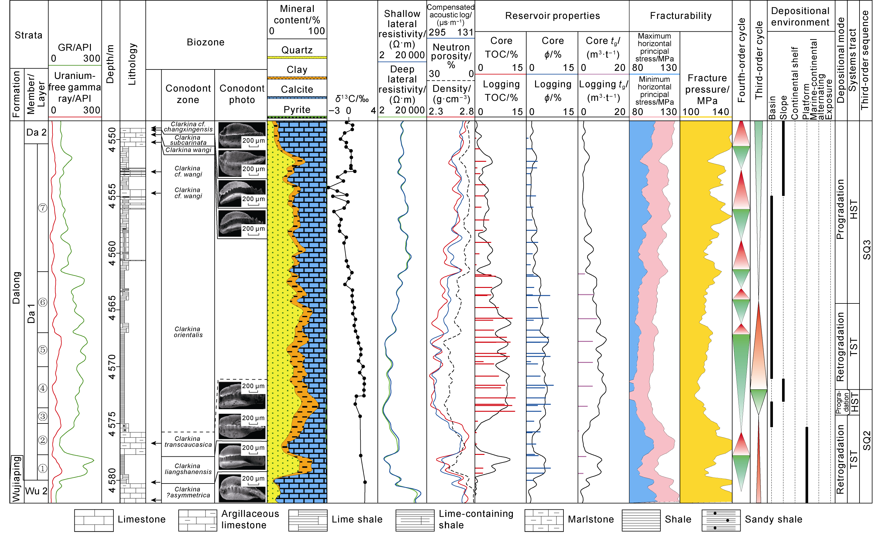 Table 2. Electrical characteristics and reservoir parameters of the Da 1 Member shale in Well Da 201 |