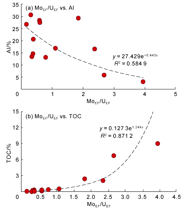 Fig. 6. Redox parameters of the depositional water environment for the Da 1 Member shale. |