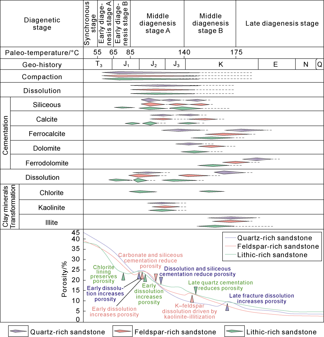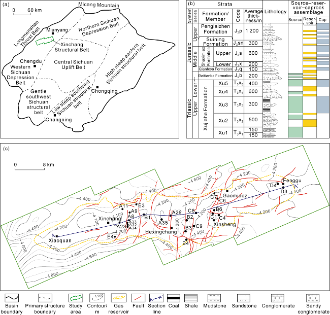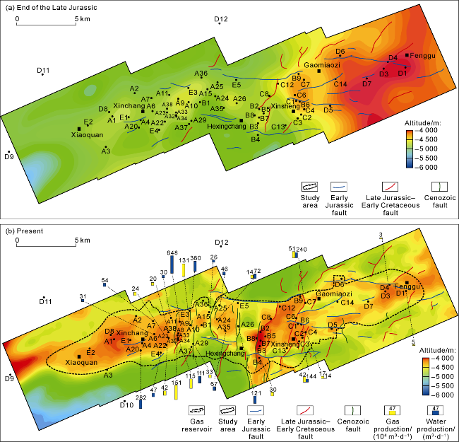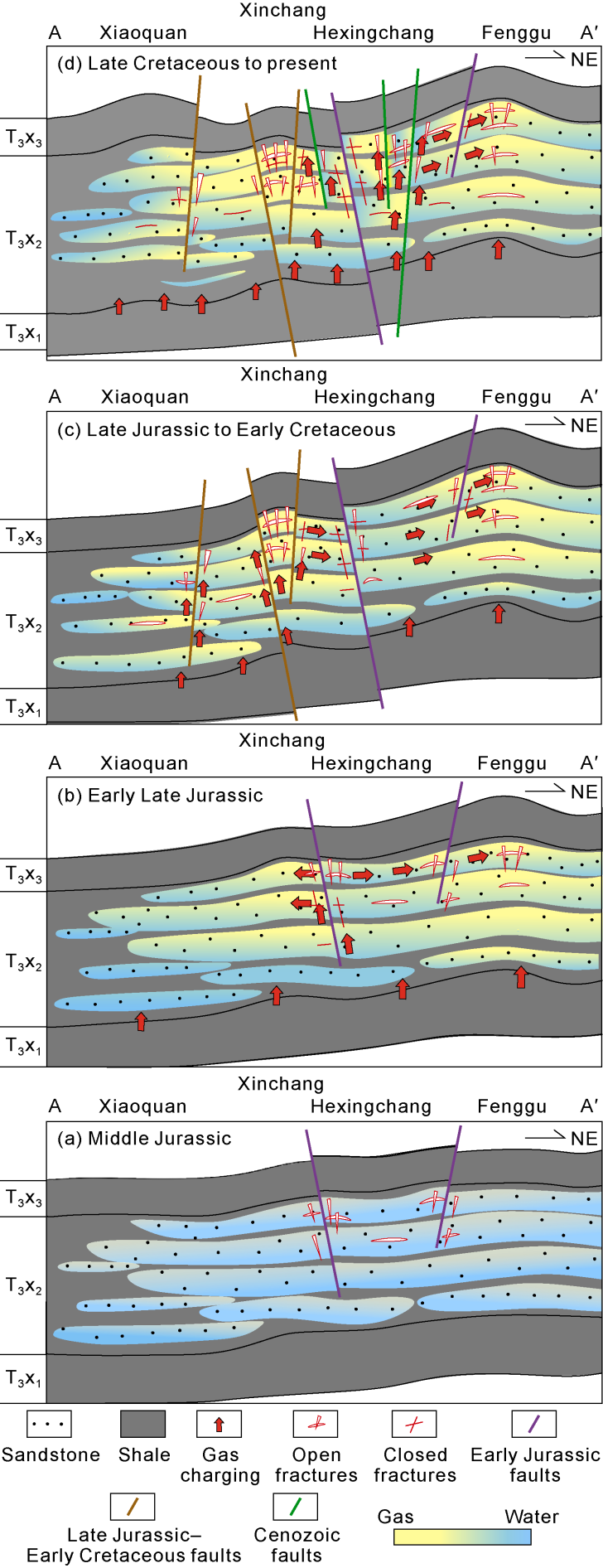 Fig. 3d). With further uplift and erosion, a small amount of adsorbed gas in the coal-bearing source rocks desorbed, together with the gas from kerogen degradation and the gas cracked by crude oil migrated through the late transport system and accumulated into gas reservoirs