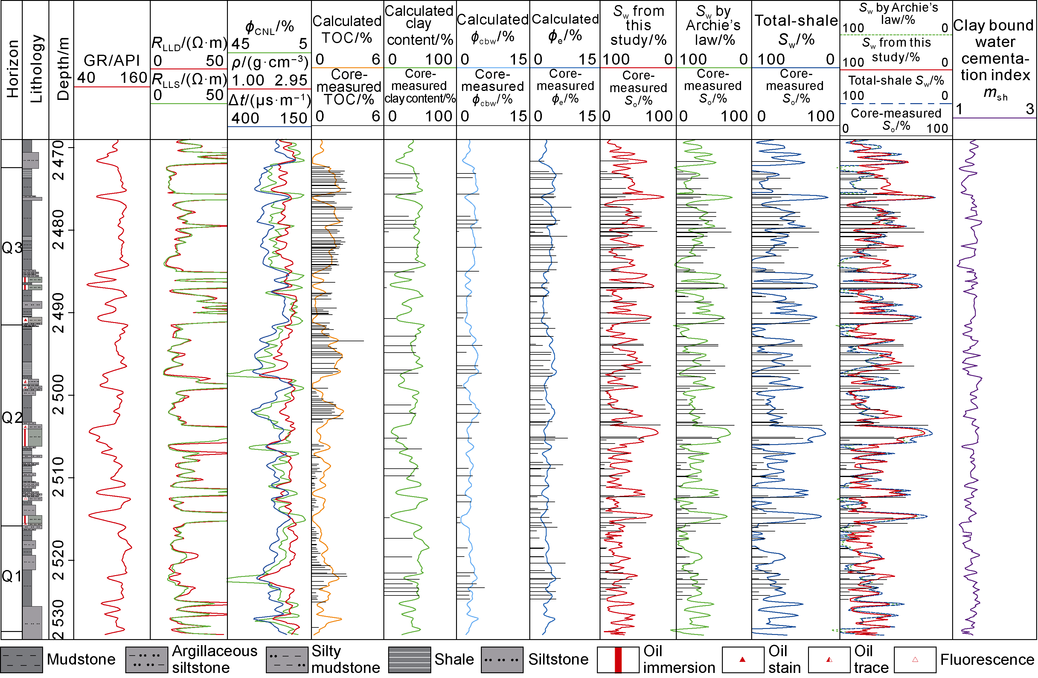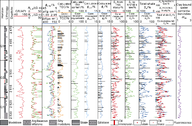 Fig. 14. Calculated oil saturation of K2qn1 in Well B of Changling Sag, Songliao Basin. |