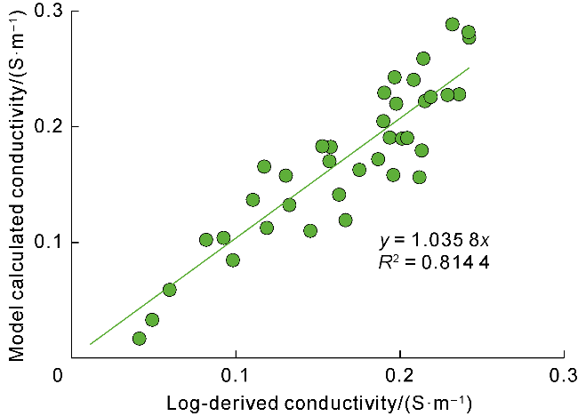 Fig. 10. Comparison between theoretically model calculated conductivity and log-derived conductivity. |