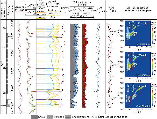Table 1. Measurement results of petrophysical properties, oil saturation, and fluid volume fraction for various lithologies |