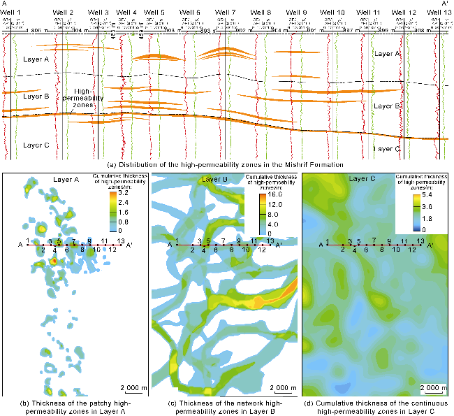 [29]. For example, the upper part of KH2 Formation in the C Oilfield in Iraq has a thin, continuous HPZ with an average thickness of 0.8 m and an average permeability of 248× 10